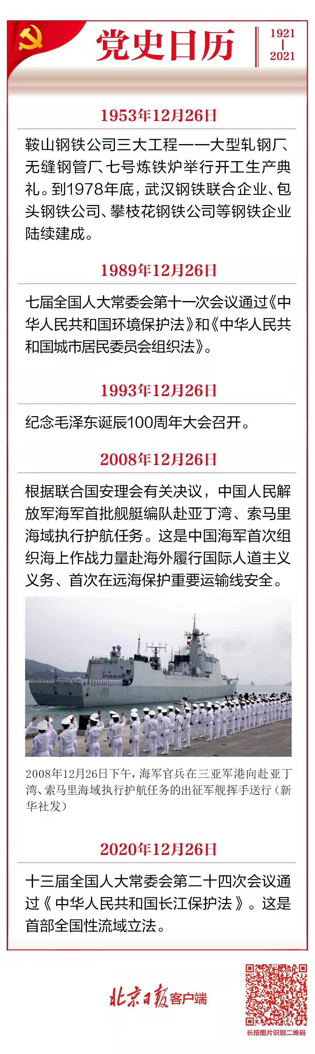 黨史日歷(12月26日)| 中國海軍首次赴亞丁灣護航出征