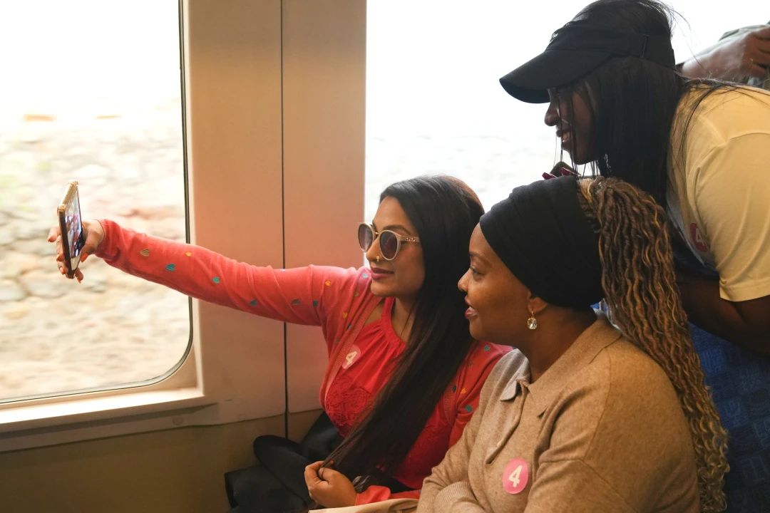 隨著使用全新“花?!蓖垦b的S2線列車從黃土店站緩緩駛出,這次春日之行正式開始。外交官和外國記者們對此十分期待,大家興奮地交流,車廂內充滿歡聲笑語。列車行至南口至八達嶺段,兩側山坡春花漸密,引得大家紛紛舉起手機拍照打卡。秘魯駐華大使館副館長艾麗卡·里薩爾多沉浸在這一美好的體驗中,“車窗外山花爛漫,遠處還可以依稀看到蜿蜒的長城,沿途美不勝收的風景令人愉悅?!?/p>