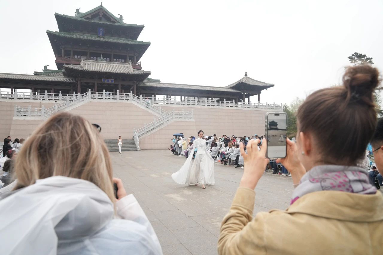 在園內最高建筑永寧閣,一場中式時裝秀驚艷了外交官和外國記者。伴隨著宛轉悠揚的戲曲表演開場,模特們身著中國傳統服飾與融合了水墨、刺繡、青花瓷、水袖等國風元素的現代時裝,從閣樓上下來,一步一履間盡顯東方美學魅力。巴哈馬駐華大使波萊特·貝瑟爾連續用了兩次“美麗”一詞來形容這場時裝秀,她認為從中可以感受到中國服飾所承載的文化底蘊、所展現的獨特美感,“從服裝設計到互動表演,無疑是一場精彩的視覺盛宴?!?/p>