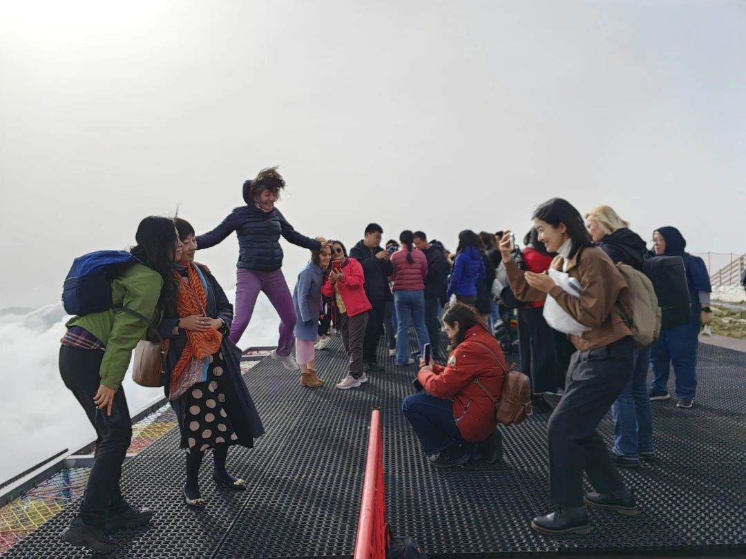 隨著氣溫上升,山頂云霧散去,遠眺群山云海翻騰。外交官、外國記者與同行的中國朋友們合影?!跋M@次延慶之旅為大家留下難忘記憶”“期待下一次能夠再次相聚”“歡迎大家在北京多走走、多看看”……大家相約,在未來共同開啟下一段美好旅程。